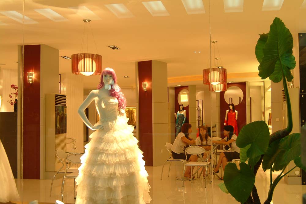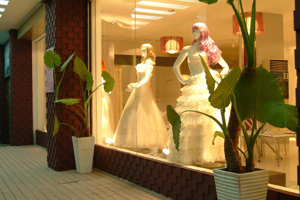 婚紗影樓的櫥窗是影樓的第一展廳,櫥窗就像是小店的“眼睛”,店面這張臉能否吸引住路人,這只“眼睛”可是有舉足輕重的作用。影樓裝修要通過(guò)巧用布景、道具及背景畫面裝飾,配以合適的燈光、色彩和最新流行的婚紗禮服,把影樓整體的裝修風(fēng)格與品位在櫥窗藝術(shù)里得到展現(xiàn)。因?yàn)橄M(fèi)者在進(jìn)入影樓之前,都要有意無(wú)意地瀏覽櫥窗,所以,櫥窗的設(shè)計(jì)與宣傳對(duì)消費(fèi)者拍攝的選擇有重要影響。